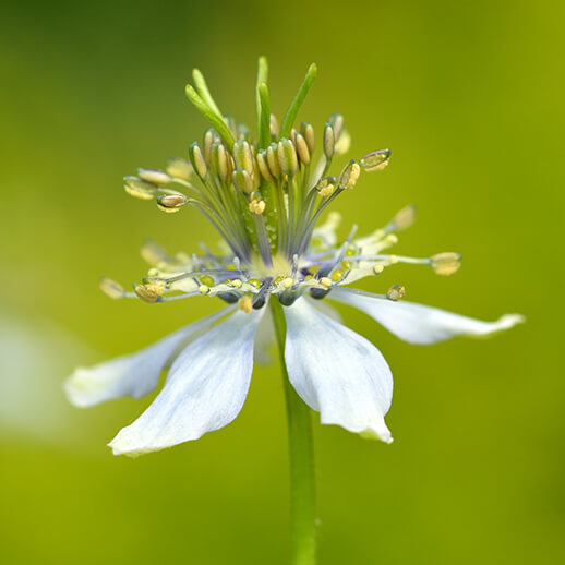 Nigella sativa is an annual with pale blue to purple flowers and thin, divided leaves that is commonly called Black Seed, Black Cumin Seed, and Black Caraway