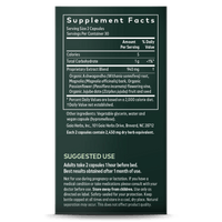 Proprietary Extract Blend: (Organic Ashwagandha (Withania somnifera) root, Magnolia (Magnolia officinalis) bark, Organic Passionflower (Passiflora incarnata) flowering vine, Jujube date (Ziziphus jujuba) fruit and seed), vegetable glycerin, water and vegan capsule (hypromellose).